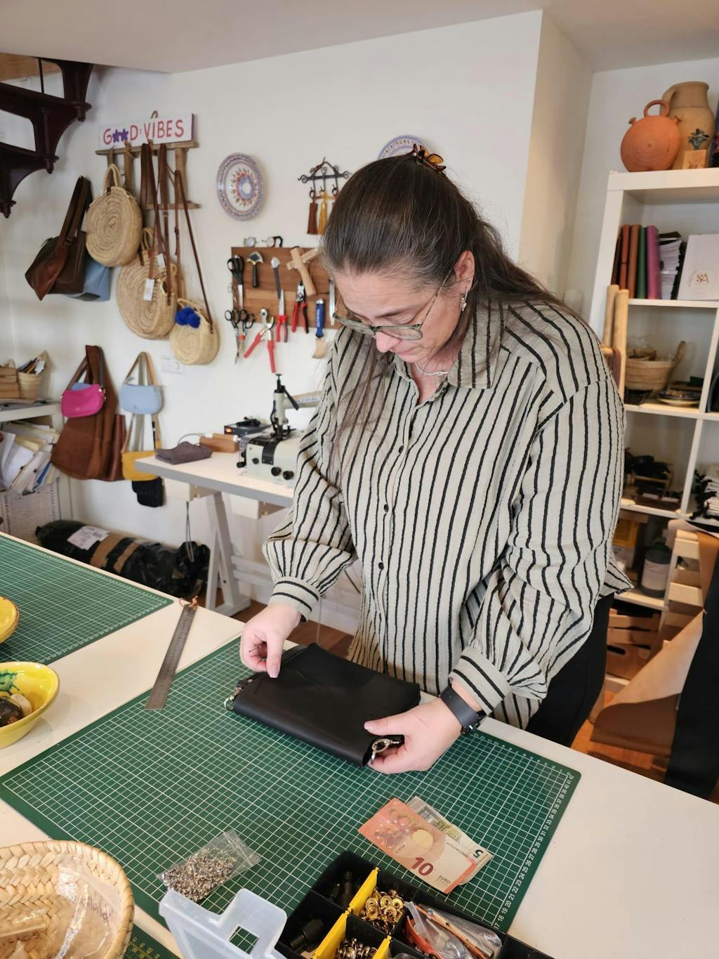 Persoonlijke begeleiding door tassenmaker Nina, in een klein groepje.